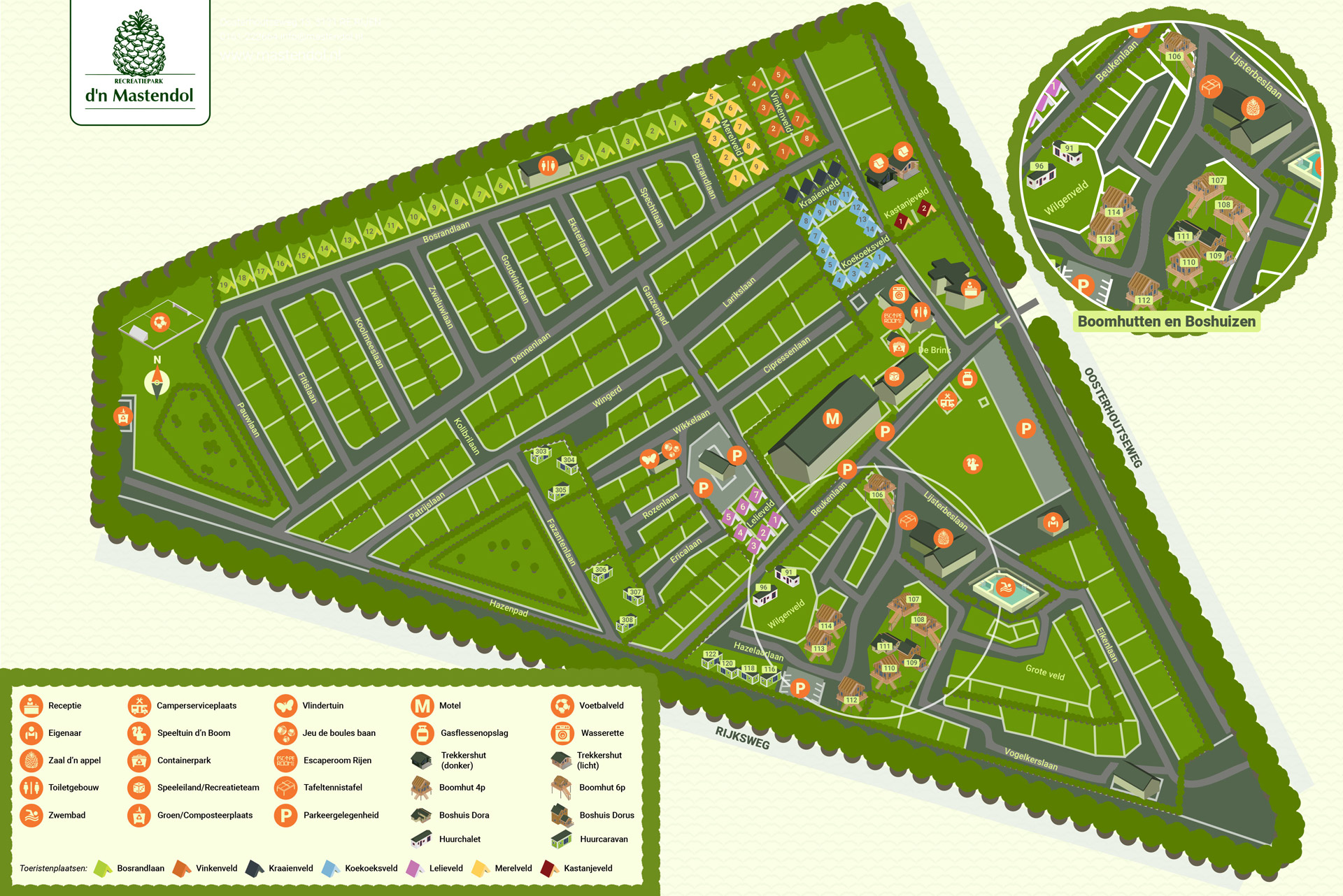 Natürlich können Sie auch mit Ihrer eigenen Campingausrüstung kommen und die Brabanter Gemütlichkeit genießen. Aber schauen Sie sich auch die speziellen Mietunterkünfte an. In einem Baumhaus oder in einem Waldhaus mit integriertem Escape Game zu übernachten, ist doch ein wahr gewordener Traum, oder? Ich persönlich würde mich für das niedliche Waldhaus aus Holz mit finnischer Sauna entscheiden, herrlich! Über die Camping-App können Sie sogar Ihre warmen Brötchen im Voraus bestellen oder ein komplettes Frühstück buchen. Auf dem Brink, einem Platz vor dem Campingplatz, ist es immer gemütlich. Von hier aus starten auch die meisten Aktivitäten, die das begeisterte Freizeitteam organisiert. Sie sind während der meisten Ferien und Feiertage anwesend. Das beheizte Freibad mit Planschbecken ist ab Mitte Mai für die Campinggäste geöffnet. Noch mehr Badespaß gibt es in einem subtropischen Schwimmparadies in der Nähe des Campingplatzes.