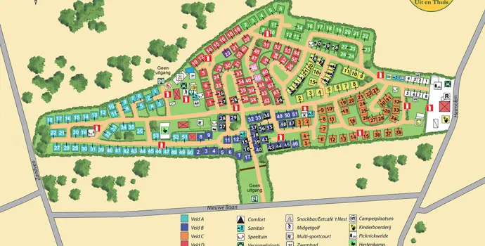 Camping Uit en Thuis ist ein ruhiger Familiencampingplatz am Brabantse Wal, in Bergen op Zoom. Eine einzigartige Campinganlage für Menschen, die Ruhe und Natur lieben. Der Campingplatz ist mit vielen Annehmlichkeiten wie modernen Sanitäranlagen, Familienduschen und einem Waschsalon ausgestattet.