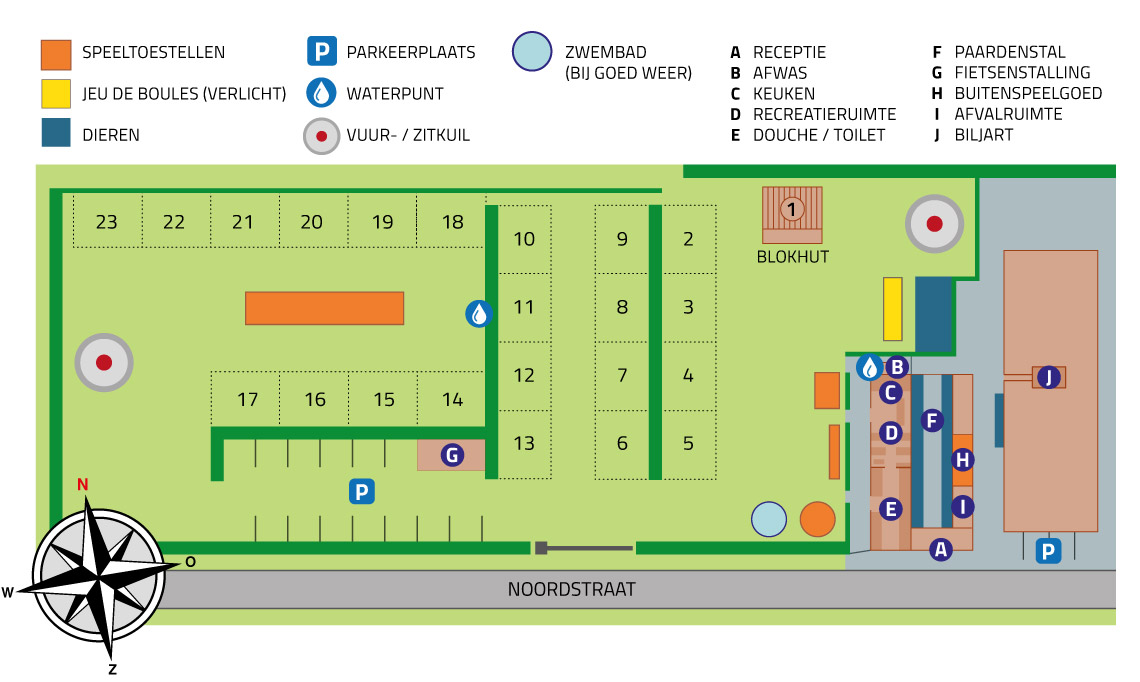Auf dem Campingplatz finden Sie eine gemütliche Kantine (mit Billard) und eine schöne Terrasse, wo Sie einen Snack und ein Getränk genießen können. Auf dem Campingplatz finden Sie moderne und gut gepflegte Sanitäranlagen. Mit einem gemütlichen (beheizten) Aufenthaltsraum und einem lustigen Spielplatz werden sich Ihre Kinder hier keine Minute langweilen.
