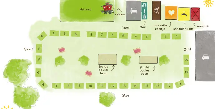Dieser ruhige, autofreie Campingplatz ist bei Menschen über 55 Jahren sehr beliebt. Hier gibt es keine Saison- oder Dauerstellplätze, sondern nur Touristencamping. Sie können jedoch das ganze Jahr über hierher kommen und Minicamping de Gijzel ist ein guter Tipp, wenn Sie im Winter campen möchten. Sie können eine Feuerschale mit Holz bekommen und es gibt auch einen Schlechtwetterraum. Alle Stellplätze befinden sich auf einem großen Feld mit Boulebahnen, Picknickbänken und viel Grün in der Mitte. Sollten Ihre (Enkel-)Kinder zu Besuch kommen wollen, gibt es einige Spielgeräte und Trettraktoren für sie.