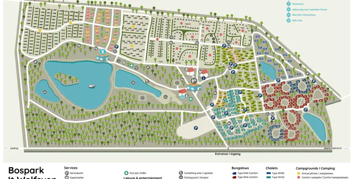 Camping Bospark 't Wolfsven ist Teil eines großen familienfreundlichen Roompot-Ferienparks inmitten der Natur von Brabant. Auf dem Park können Sie sich sportlich betätigen, aber auch die gastronomischen Einrichtungen sind sehr gut. Der große Badesee, der Angelteich und das Hallenbad sorgen für stundenlangen Wasserspaß.