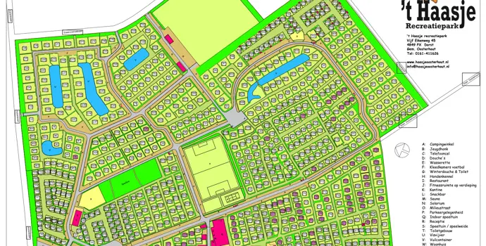 Haasje Over, eine Indoor-Spielhalle für Kinder, befindet sich ebenfalls im Park. Es gibt etwa 130 touristische Stellplätze für Zelte und Wohnwagen und 7 gepflasterte Stellplätze speziell für Camper. Auf diesen Stellplätzen steht Ihnen ein hochmodernes, komfortables Sanitärgebäude zur Verfügung, das unter anderem mit Fußbodenheizung, Klimaanlage, Zugangskontrolle, Geschirrspülern, Behindertentoilette und -dusche sowie einem Babyzimmer ausgestattet ist. Einige Stellplätze verfügen über private Sanitäranlagen. Das heißt, Sie haben Ihre eigene Toilette, Dusche und Waschbecken direkt neben Ihrem Wohnwagen.