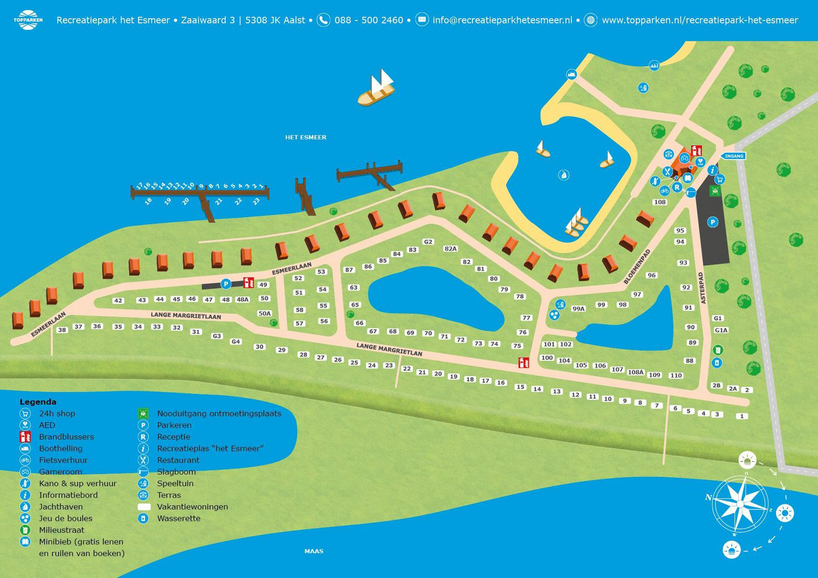Wir freuen uns, Ihnen den Topparken Ferienpark Het Esmeer vorstellen zu können. Dieser grüne und wasserreiche Park hat eine einzigartige Lage zwischen der Maas und dem Erholungsgebiet Neswaarden. Der Park grenzt an die gesamte Breite des Esmeers. Ein schöner Erholungssee mit einem Sandstrand. Hier können Sie sich sonnen, schwimmen oder mit dem Kanu oder dem Boot auf den See hinausfahren. Das Parkrestaurant bietet einen herrlichen Blick auf den Hafen und das Wasser.