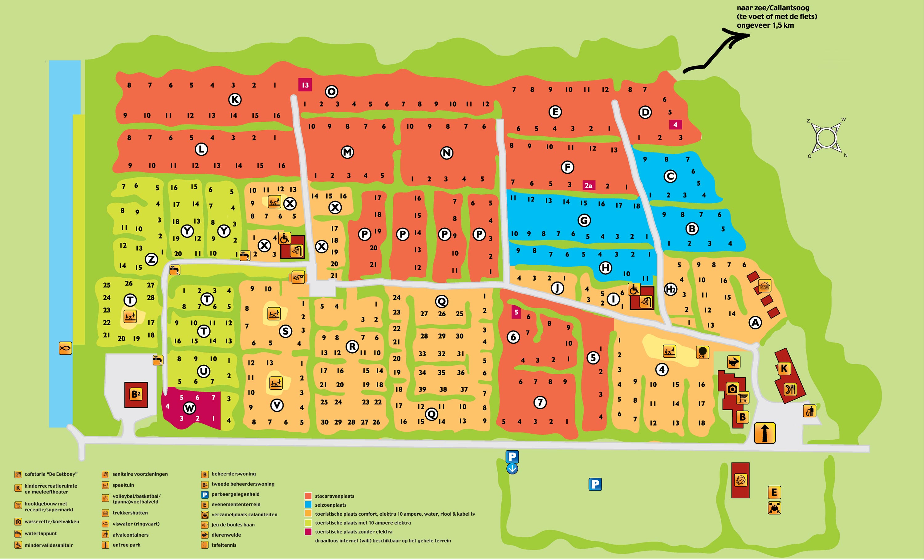 Die Grenze zwischen zwei verschiedenen Naturschutzgebieten trägt zum einzigartigen Urlaubsgefühl von De Nollen bei, einem Campingplatz, der vom ANWB/ADAC mit nicht weniger als 4 Sternen ausgezeichnet wurde. In der Coffee and Bakery erhalten Sie leckere Brötchen und frischen Kaffee zum Frühstück. Und zum Mittag- oder Abendessen können Sie das Restaurant besuchen, wo Sie auch Mahlzeiten zum Mitnehmen erhalten.