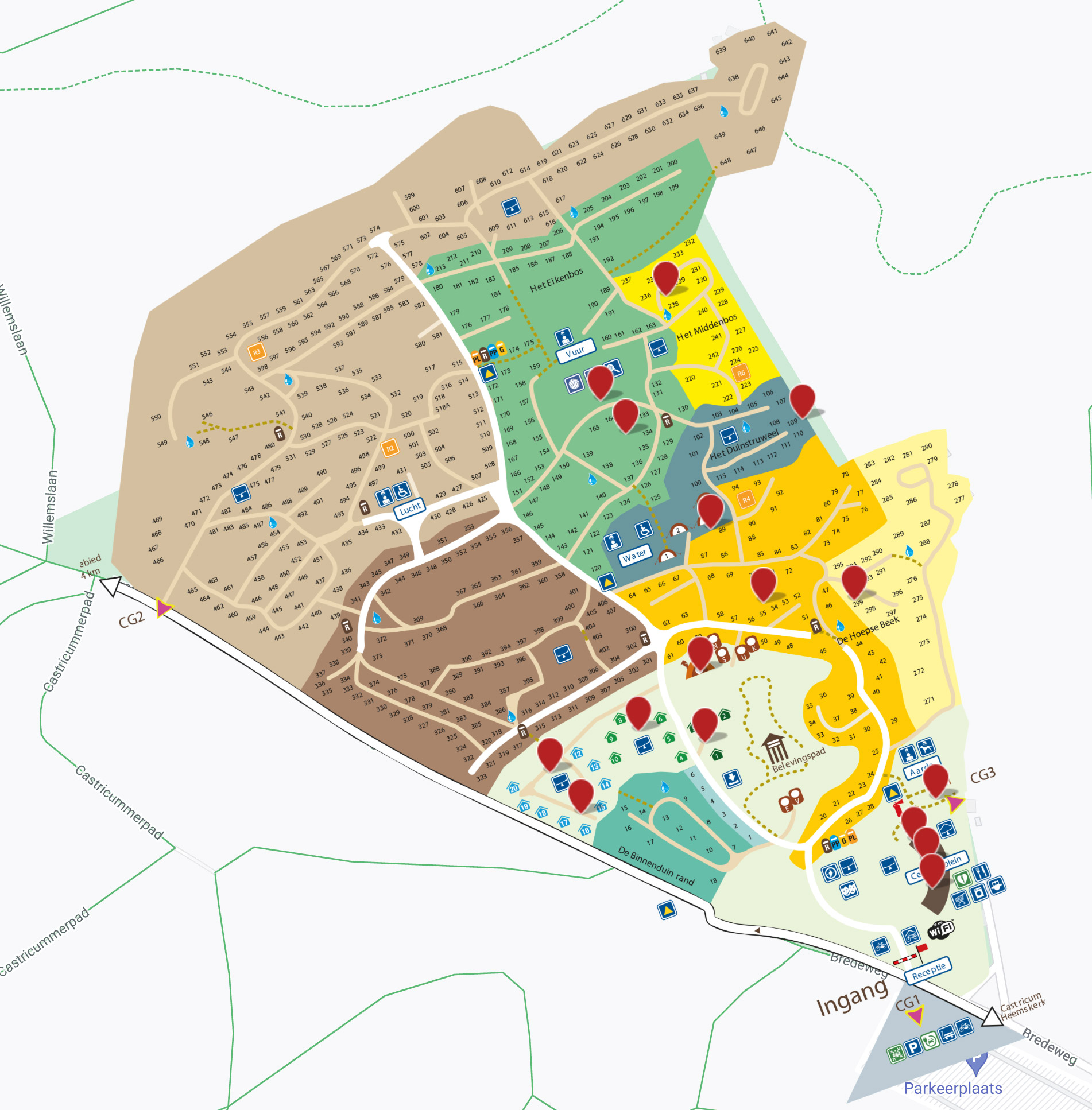 Vor dem Campingplatz befindet sich der zentrale Platz, wo Sie alle Einrichtungen vorfinden. Morgens können Sie den Duft von frisch gebackenem Brot riechen und abends weht Ihnen der Duft von Pizza entgegen. Für Getränke an Ihrem Zelt können Sie aus lokalen Produkten und sogar lokalem Wein aus dem Minimarkt wählen. Eines der Restaurants heißt Knoest und ist für seine gemeinsamen Abendessen bekannt. Angrenzend an die Terrasse befindet sich ein großer Spielplatz mit Wasser- und Sandelementen. Hier darf man sich schmutzig machen! Zum Glück gibt es auf dem Campingplatz einen Waschsalon.