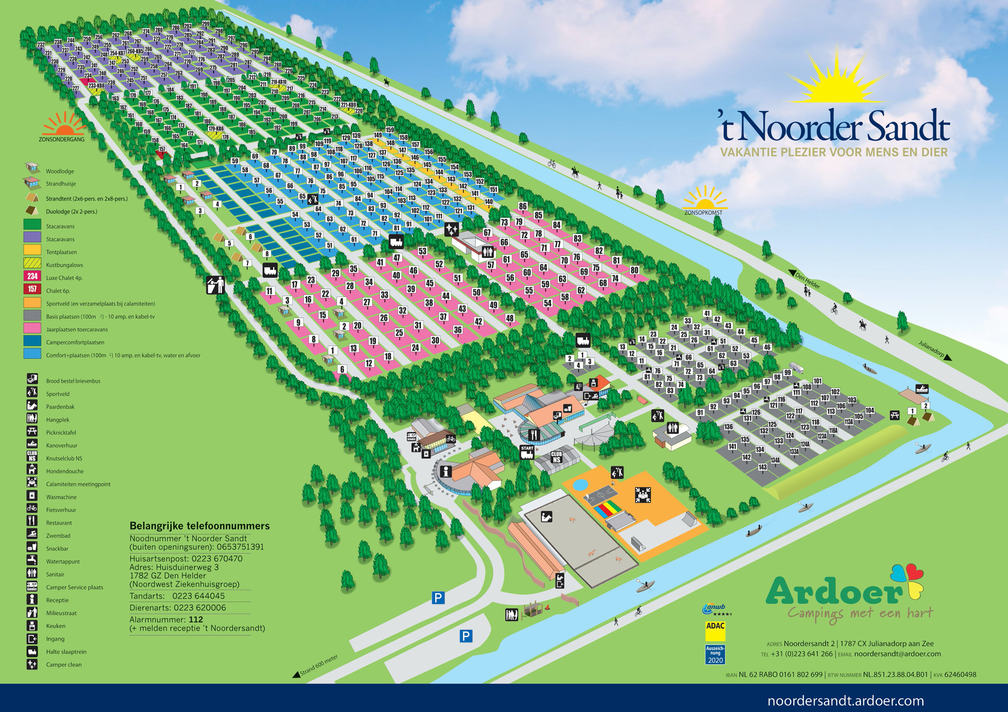 Der Campingplatz 't Noorder Sandt liegt in der Nähe von Strand und Meer in der Stadt Julianadorp. Er wurde kürzlich zum sonnigsten Platz der Niederlande gewählt! Hier können Sie den Strand und das Meer genießen und frische Luft schnuppern.