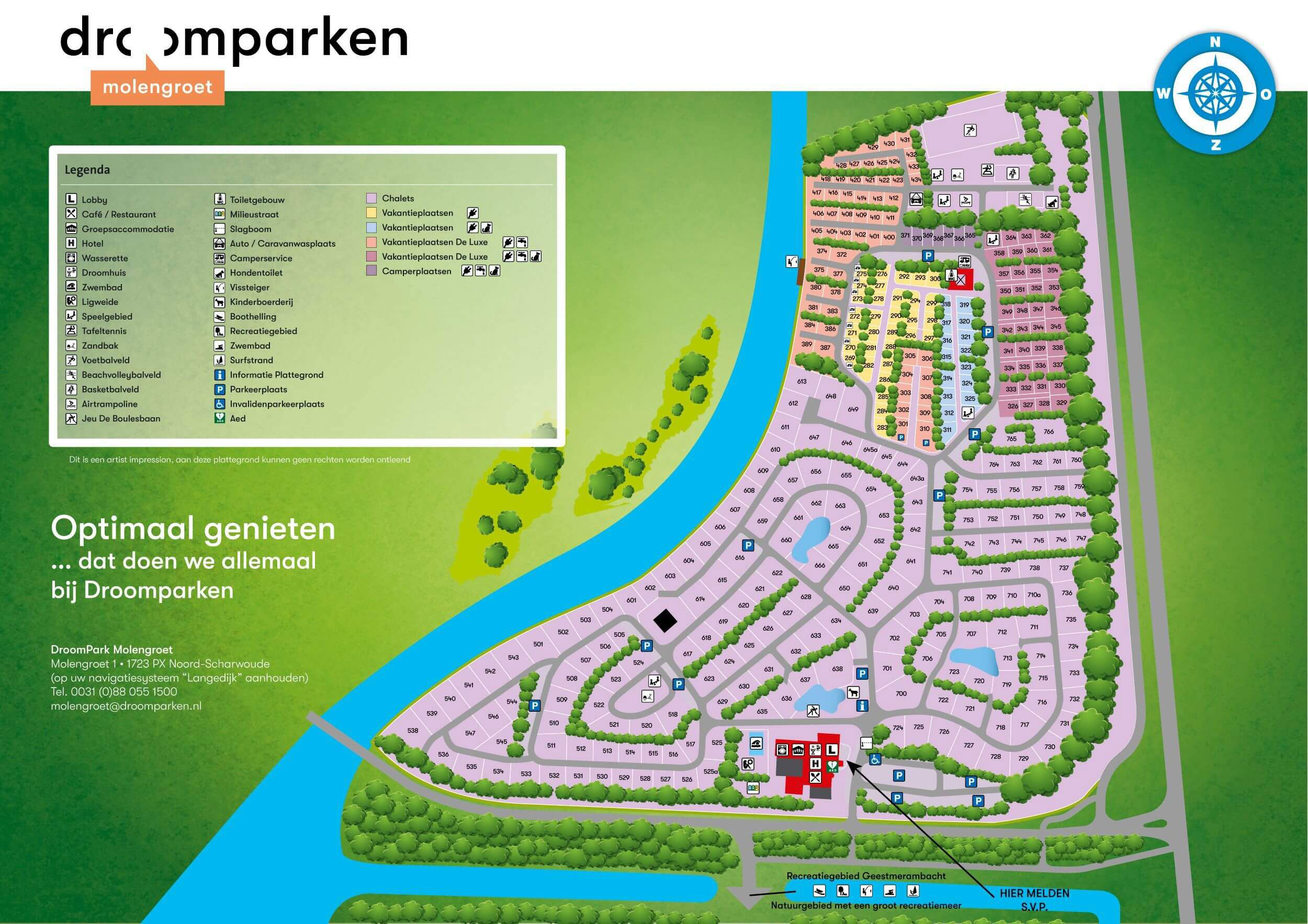 Ein ideales Reiseziel mit der Familie oder zu zweit. Viele (Sport-)Einrichtungen, gelegen im Erholungsgebiet Geestmerambacht. Der Campingplatz ist Teil eines schön angelegten Chaletparks und liegt gegenüber einem Erholungspark mit mehreren Badeseen. Die meisten der geräumigen Stellplätze befinden sich in geschützten Bereichen. Mietunterkünfte sind deutlich vorhanden. Es gibt einen Angelsteg und einen kleinen Tierpark. Das Restaurant hat eine gemütliche Terrasse.