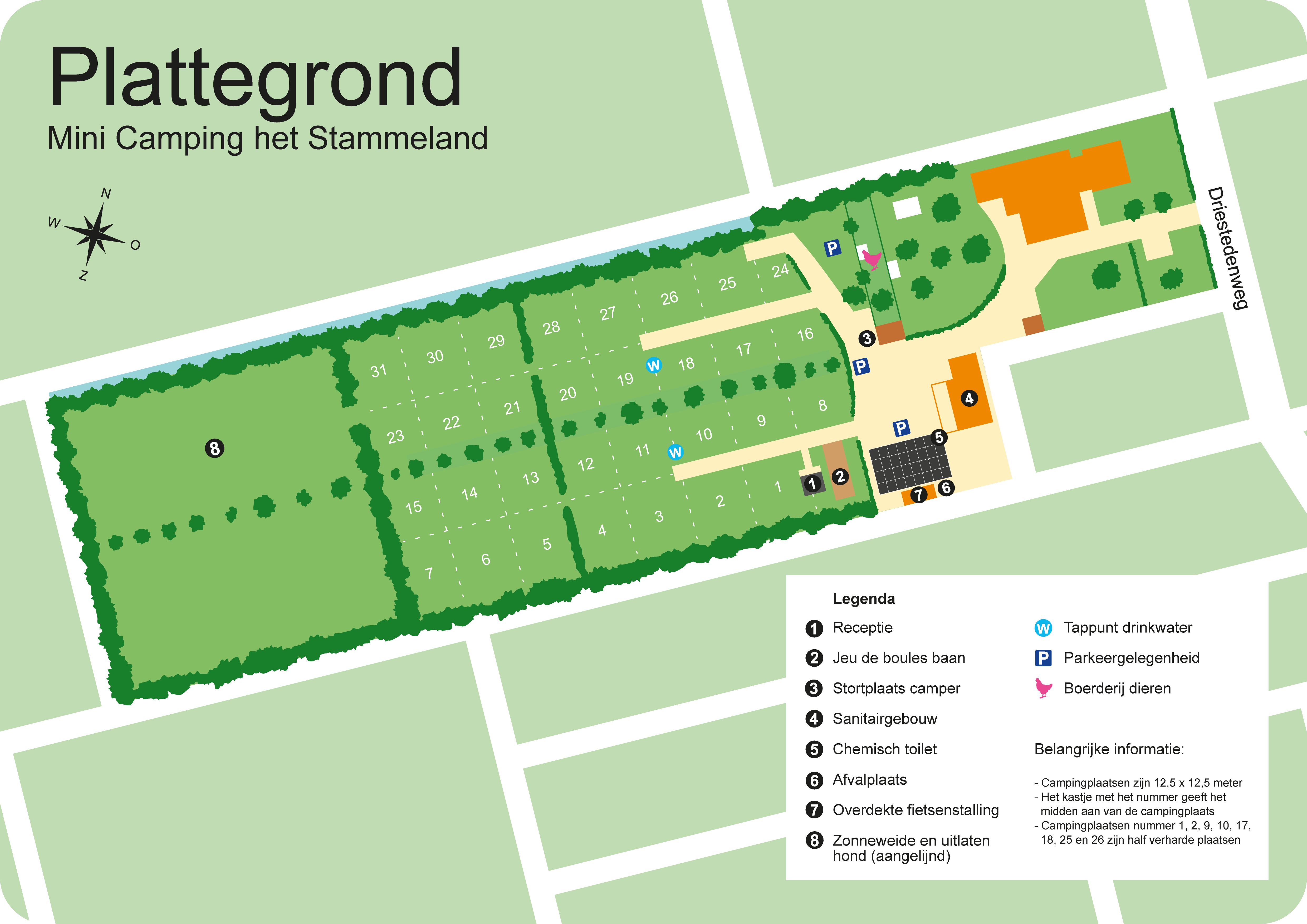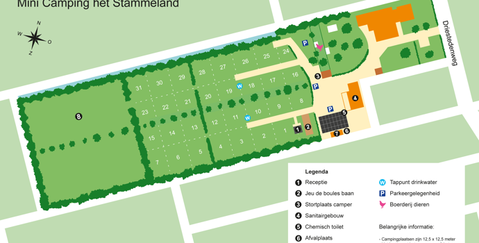 Auf dem Campingplatz finden Sie Ruhe (kein Verkehrslärm), Platz und einen weiten Blick auf die ländliche Landschaft. Het Stammeland verfügt über 30 große Stellplätze von 156 m², von denen acht teilweise mit Rasengittersteinen belegt sind. Jeder Stellplatz hat einen eigenen Stromanschluss (10 oder 16 Ampere). Eine Wasserzapfstelle ist auf dem Gelände vorhanden und natürlich können Sie kostenloses Highspeed-Wi-Fi nutzen.