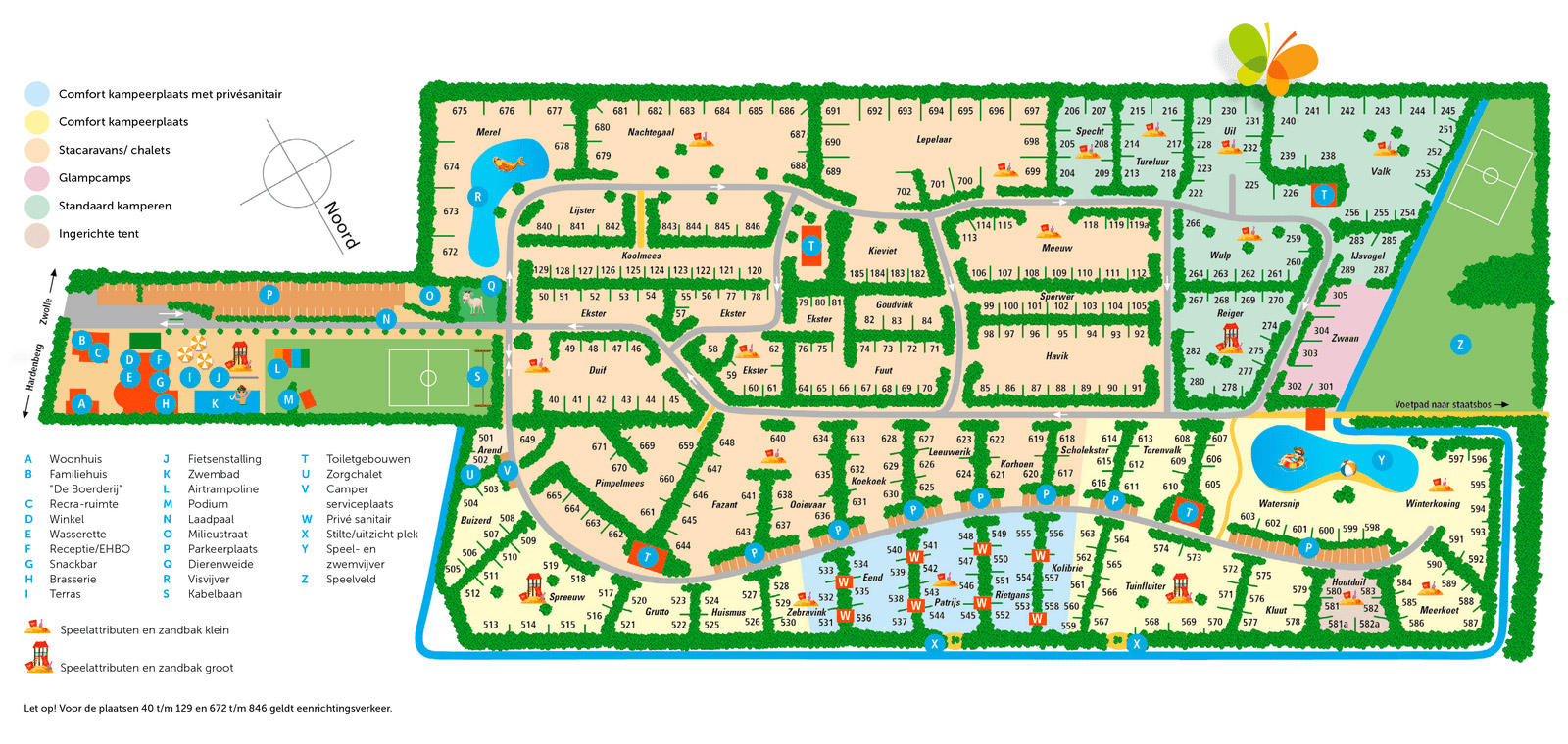 Im vorderen Teil des Campingplatzes finden Sie alle Einrichtungen, und das sind nicht wenige! Beginnen wir mit dem (beheizten) Hallenbad mit Überdachung, damit Sie jederzeit schwimmen können. Dann geht es weiter zum Schwimm- und Spielteich und zur Tierweide. Für die echten Angler unter uns gibt es einen schönen Angelteich auf dem Gelände. Wenn das Wetter nicht so gut ist, gibt es einen Indoor-Spielplatz und einen gemütlichen Aufenthaltsraum. Für den guten Appetit gibt es eine Brasserie, eine Snackbar und einen Campingplatzladen. Den ganzen Tag auf dem Campingplatz zu verbringen, ist kein Problem. Ansonsten laden Sie sich die Klimberg-App herunter. Damit können Sie nicht nur Essen bestellen, sondern auch das Unterhaltungsprogramm abrufen.