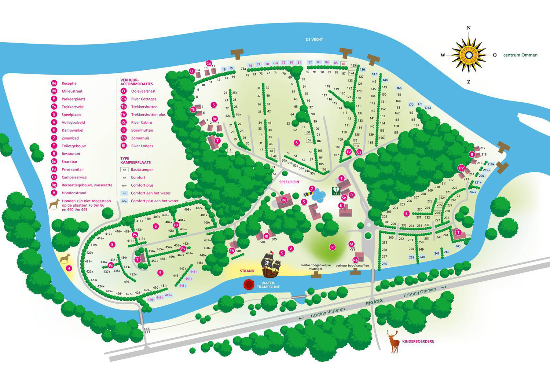 Sie können auch wunderbare Unterkünfte mieten, vom Baumhaus aus blicken Sie über die Vecht und es ist toll, in einem der River Cottages aufzuwachen. In der Mitte des Campingplatzes befindet sich das beheizte Freibad mit Familienrutsche und Kinderbecken, das die ganze Saison über beheizt ist. Die Kinder haben Spaß an den Spielgeräten und Sie können sich auf der Sprudelbank entspannen. Auf dem Campingplatz an der Koeksegeul gibt es einen Spielstrand, an dem sich die Kinder stundenlang im Wasser, auf dem Piratenschiff, beim Bauen von Sandburgen und beim abendlichen Stockbrotbacken über dem Lagerfeuer vergnügen können!