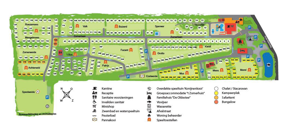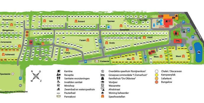 Alle Stellplätze sind um gemütliche kleine Felder mit einem Spielplatz in der Mitte angelegt. So haben Sie immer einen Blick auf Ihre spielenden Kinder. Ein begeistertes Freizeitteam ist in allen Schulferien anwesend. Vom Puppentheater bis zur Geistertour gibt es von Montag bis Samstag viel zu erleben. Aufgrund seiner christlichen Identität legt der Campingplatz Wert auf die Sonntagsruhe. Das bedeutet, dass das Schwimmbad, das Restaurant und die Rezeption sonntags geschlossen sind. Sonntags können Sie an einer Bibelstunde teilnehmen und mitsingen. Der Campingplatz verfügt über ein beheiztes Freibad mit Wasserrutsche und Wasserspielplatz. Seit kurzem gibt es ein neues Planschbecken mit Liegewiese. Ein Wasserspaß für die ganze Familie. Für die Liebhaber des Angelsports gibt es auch einen Angelteich am Eingang des Campingplatzes. Es gibt ein Restaurant mit Essen zum Mitnehmen. Machen Sie es sich im hübschen Wintergarten oder auf einem der Loungesofas gemütlich. Kinder können sich auch drinnen im Kaninchenkäfig vergnügen.