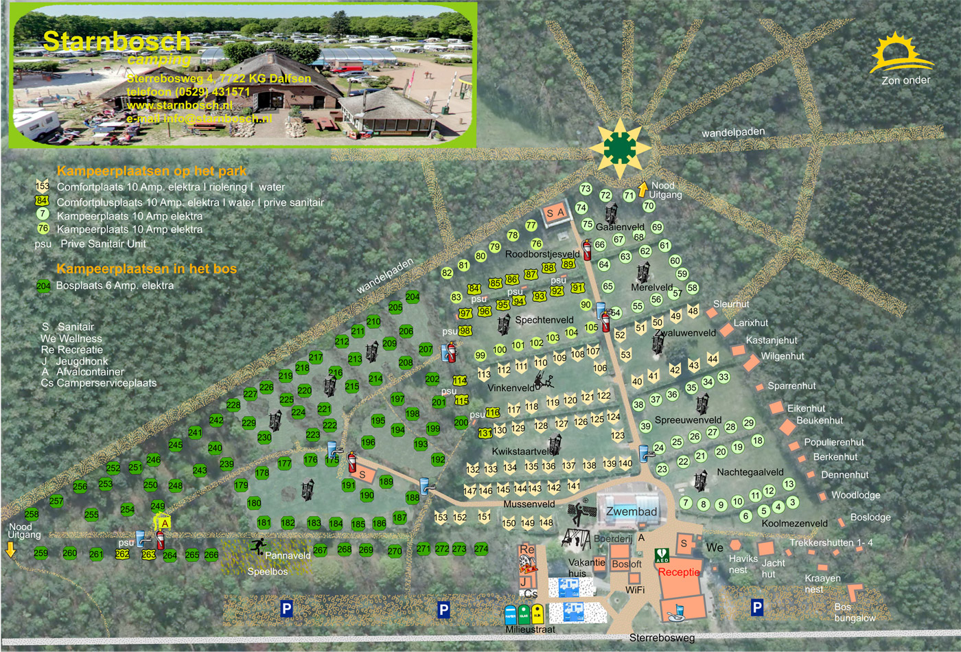 Der Campingplatz Starnbosch liegt versteckt im jahrhundertealten Sterrenbosch in den Wäldern zwischen Dalfsen, Heino und Ommen. Willkommen im Vechtdal von Overijssel. Ein schöner, gut gepflegter Familiencampingplatz mit vielen Sehenswürdigkeiten und viel Natur in der Nähe.