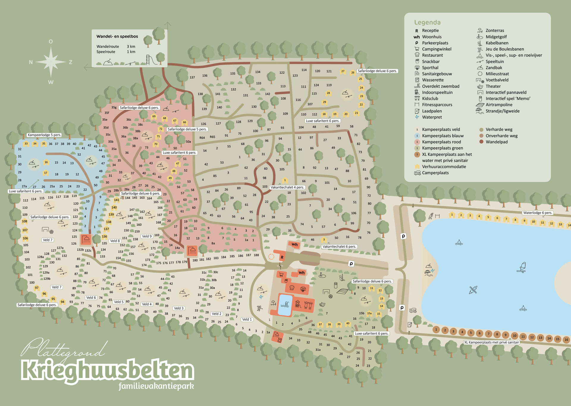 Der Familienferienpark Krieghuusbelten liegt in Salland, einer Gegend, die für ihre waldreiche, ruhige Umgebung mit historischen Dörfern, Bauernhöfen und Gutshöfen bekannt ist. Die Stellplätze sind geräumig und nicht abgegrenzt und in der Mitte des Feldes gibt es Spielgeräte und Sandkästen für die Kinder.