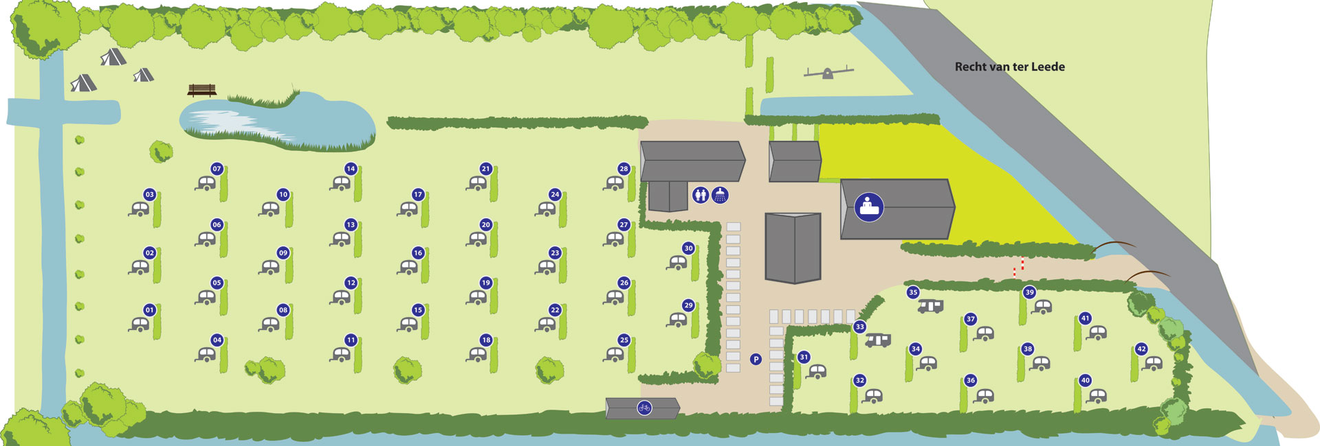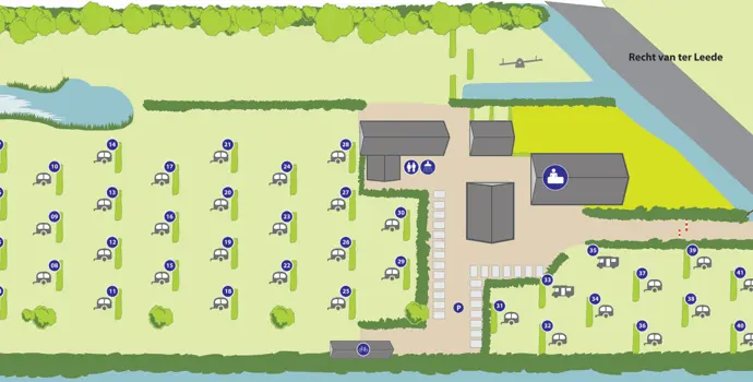 Der Campingplatz begann 1985 mit fünf Stellplätzen und ist inzwischen auf 40 Stellplätze angewachsen, die sich vor allem durch Ruhe und Platz auszeichnen. Camping Ter Leede liegt inmitten der charakteristischen Landschaft der Vijfheerenlanden, an der Grenze zur Betuwe und umarmt von den Flüssen Lek, Merwede und Linge.