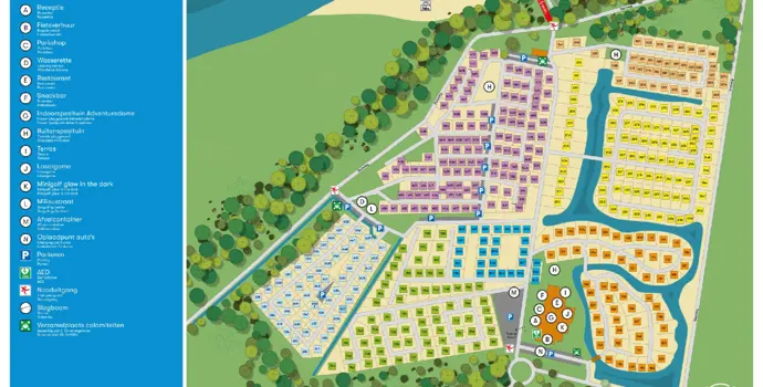 Bei 14 verschiedenen Ferienunterkünften finden Sie bestimmt eine schöne Unterkunft. Von Paaren bis zu einer Gruppe von 12 Personen, mit Haustieren oder im Erdgeschoss? Dieser Park ist das ganze Jahr über geöffnet und ohne Feuerwerk. Der Park verfügt über einen Brötchenservice und einen Minimarkt. Sie können auch Mahlzeiten mitnehmen oder in dem stimmungsvollen Restaurant Platz nehmen. Von der Terrasse aus können Sie Ihren Kindern auf dem Spielplatz zuwinken.