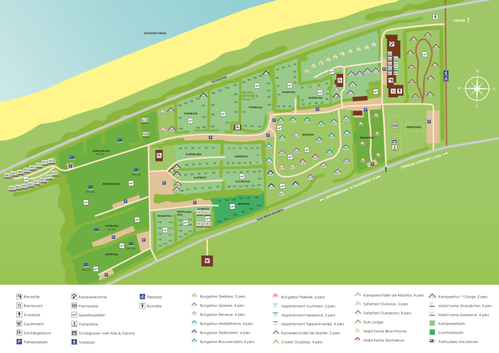 Ob Sie nun mit Ihrer eigenen Campingausrüstung campen oder lieber eine (Luxus-)Unterkunft mieten möchten, dieser Ferienpark bietet Ihnen alle Möglichkeiten. Mit einem kurzen Spaziergang sind Sie am schönen Strand von Ouddorp, einem der beliebtesten Ausflugsziele Zeelands.