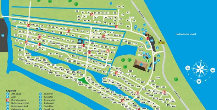 Neben Wassersportlern ist dies auch ein idealer Standort, wenn Sie Städte besuchen möchten. Rotterdam, Den Haag und Gouda liegen gleich um die Ecke. Auch der Strand ist leicht zu erreichen. Andererseits ist der Park selbst sehr ruhig, umgeben von viel Grün und in der Nähe des Naturschutzgebietes 'Park Hitland'. Ideal nach einem Tag, an dem man durch eine geschäftige Stadt gelaufen ist! In der Nähe des Parkeingangs befindet sich eine Reitschule; fragen Sie an der Rezeption nach den Reitmöglichkeiten. Sie können sich die Pferde oder Ponys jederzeit ansehen und streicheln. Der Park verfügt über ein Restaurant mit Terrasse, in dem Grillgerichte und Pizzas serviert werden. Es gibt auch eine Mitnahmemöglichkeit.