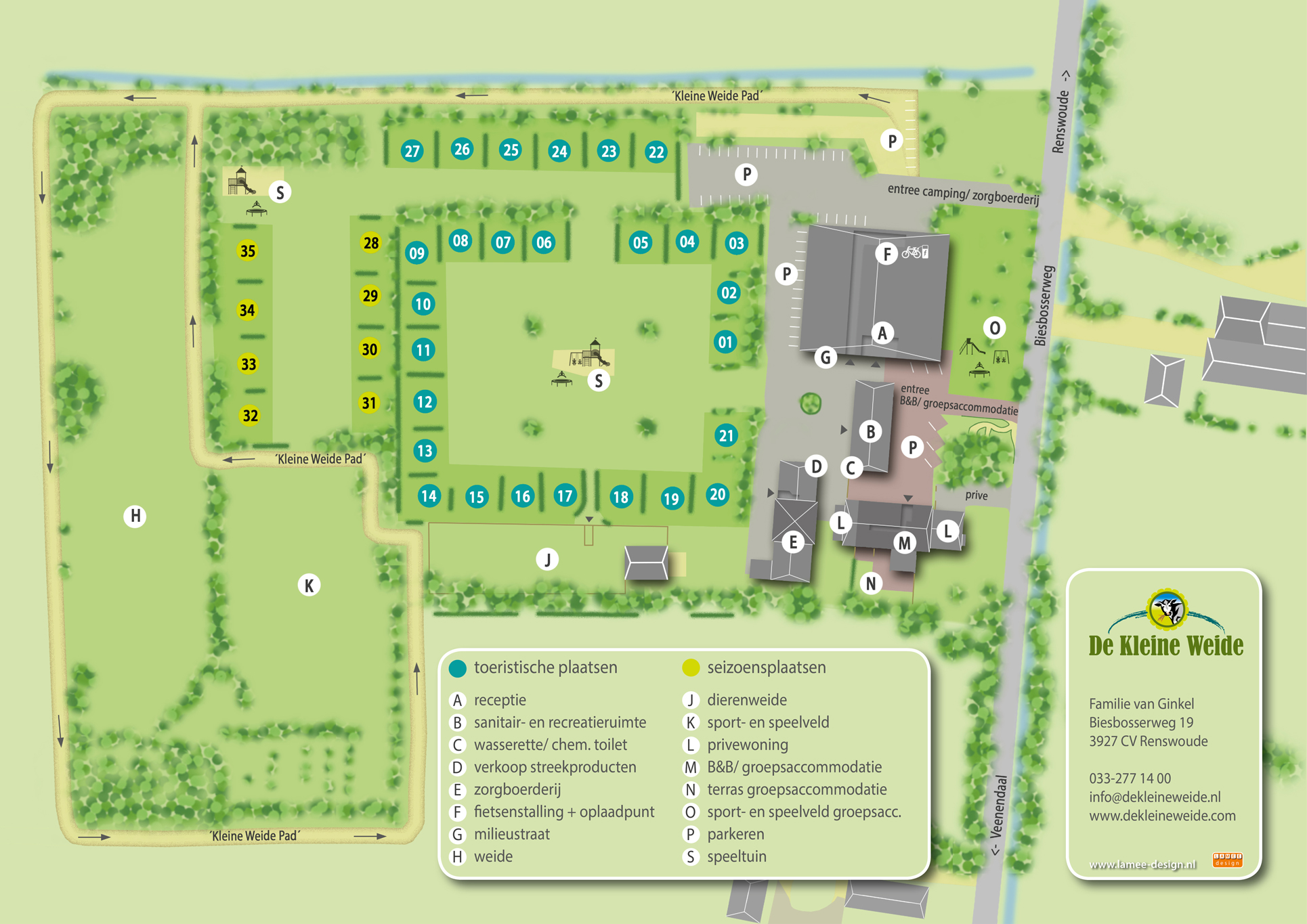 Der Campingplatz verfügt über 27 touristische Stellplätze und 8 Saisonstellplätze. Die Saisonplätze liegen zusammen, die Touristenplätze befinden sich auf einem großen Feld mit einem Spielplatz in der Mitte oder entlang eines Weges. Der Landwirt stellt Ihre Campingausrüstung gerne mit seinem Traktor auf Ihrem Lieblingsplatz ab. Der Rest des Geländes ist autofrei. De Kleine Weide ist ein echter Familienbetrieb, in dem die Sonntagsruhe respektiert wird. Neben dem Minicampingplatz gibt es auf dem Gelände einen Hofladen, eine Terrasse für Wanderer und Radfahrer und einen Pflegehof. Für die Kinder gibt es einen großen Sport- und Spielplatz, einen zentral gelegenen Spielplatz und mehrere Gokarts, die man benutzen kann. Regnet es? Dann können Sie sich auch im Freizeitraum mit Shuffleboard und Tischtennis vergnügen. Auf der Tierweide können Sie bei der Betreuung der Tiere helfen; es gibt viel zu tun mit den Alpakas, Schafen und Hühnern. Der Campingplatz vermietet auch voll ausgestattete Wohnungen im ehemaligen Teil des Bauernhofs. Auf dem Campingplatz selbst gibt es kein Schwimmbad, aber im Umkreis von 5 Kilometern finden Sie sowohl ein Frei- als auch ein Hallenbad.