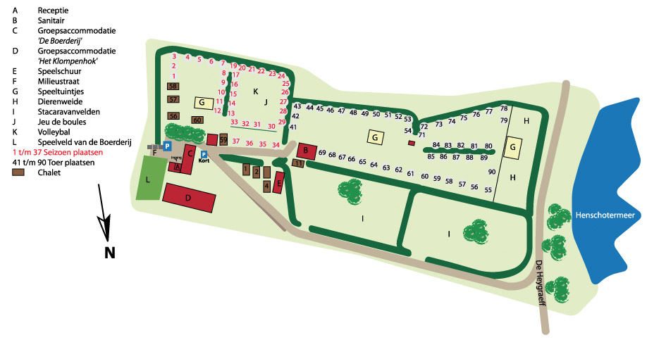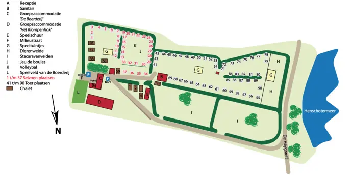 Seit dem Jahr 2000 haben sich die Betreiber ganz auf das Campen hinter dem Hof konzentriert. Die "Bauernhofatmosphäre" wird jedoch beibehalten. So leben zum Beispiel viele verschiedene Tiere auf dem Campingplatz. Unter Aufsicht ist es möglich, auf den Pferden und Ponys zu reiten. Kinder können auch bei der Pflege der Tiere helfen. Über 100 Stellplätze stehen für Touristencamping, Saison- und Jahresplätze zur Verfügung. Die Stellplätze sind geräumig und erstrecken sich über schöne grüne Rasenflächen. Speziell für Kinder gibt es viele Einrichtungen. Sie können in der Spielscheune, auf dem Trampolin, auf den Spielplätzen oder mit den Fahrrädern und Go-Karts spielen. Als Familie können Sie eine Partie Petanque oder Volleyball spielen. Das Freizeitteam hat ein attraktives Programm für Jung und Alt rund um den Bauernhof zusammengestellt. Die Wünsche der Gäste stehen im Mittelpunkt, so dass es durchaus Raum für spontane Aktivitäten wie ein Lagerfeuer gibt. Der Sonntag ist ein Ruhetag auf dem Campingplatz!