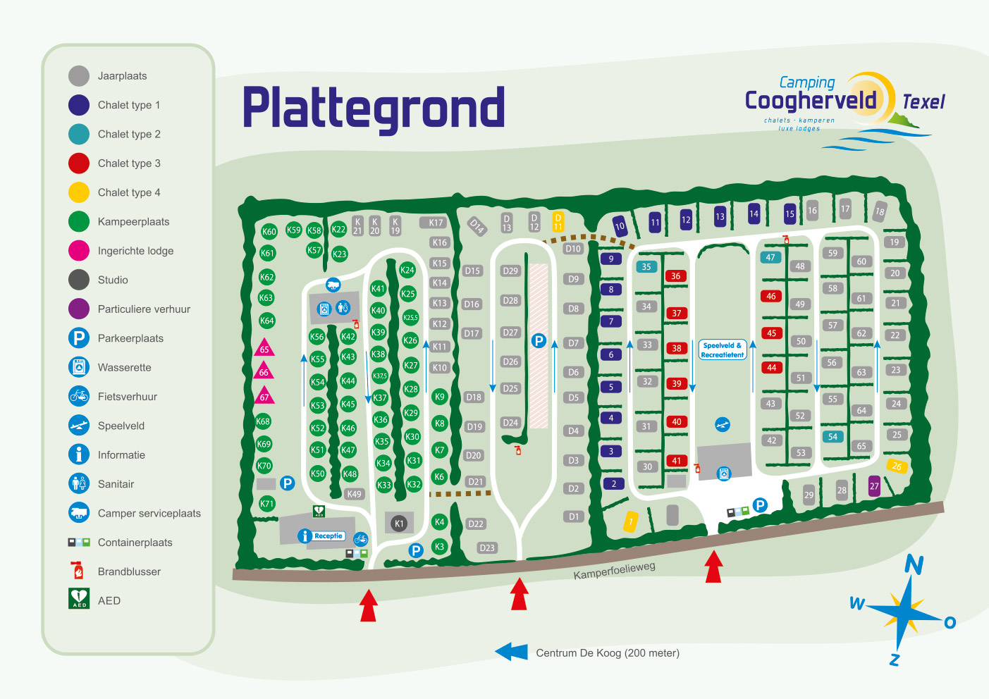 Coogherveld ist ein kleiner, ruhiger Familiencampingplatz mit Chalets, Lodges und einem Campingbereich in De Koog. Die Stellplätze sind für Wohnwagen, Wohnmobile, Faltanhänger und Zelte geeignet. Die maximale Länge der Campingausrüstung beträgt 8 Meter. Der Campingplatz verfügt über ein geräumiges Sanitärgebäude.