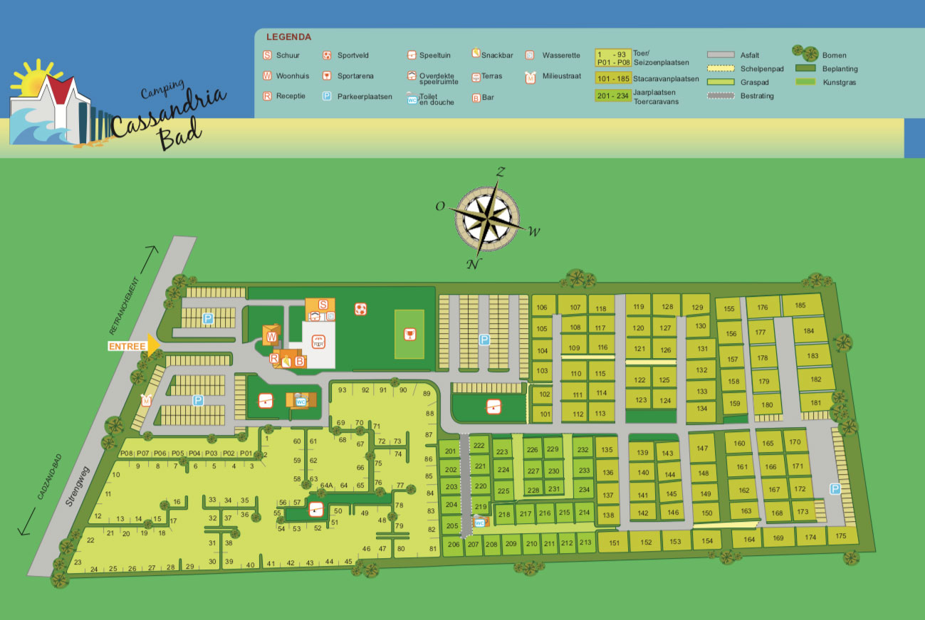 Im Frühling, Sommer und Herbst sind Sie auf diesem Campingplatz für einen Urlaub oder eine Wochenendreise willkommen. Hinter den Dünen an der Küste von Zeeland-Flandern liegt der mittelgroße Familiencampingplatz Camping Cassandria-Bad. Der Campingplatz Cassandria-Bad in der Nähe von Cadzand ist der perfekte Ausgangspunkt für Sonne, Meer und Sand, Wanderungen und Radtouren oder Ausflüge in die umliegenden Dörfer und Städte. Lassen Sie sich überraschen, was Zeeland-Flandern alles zu bieten hat.