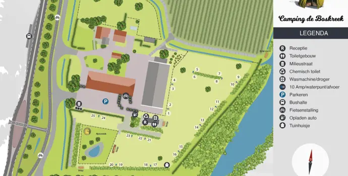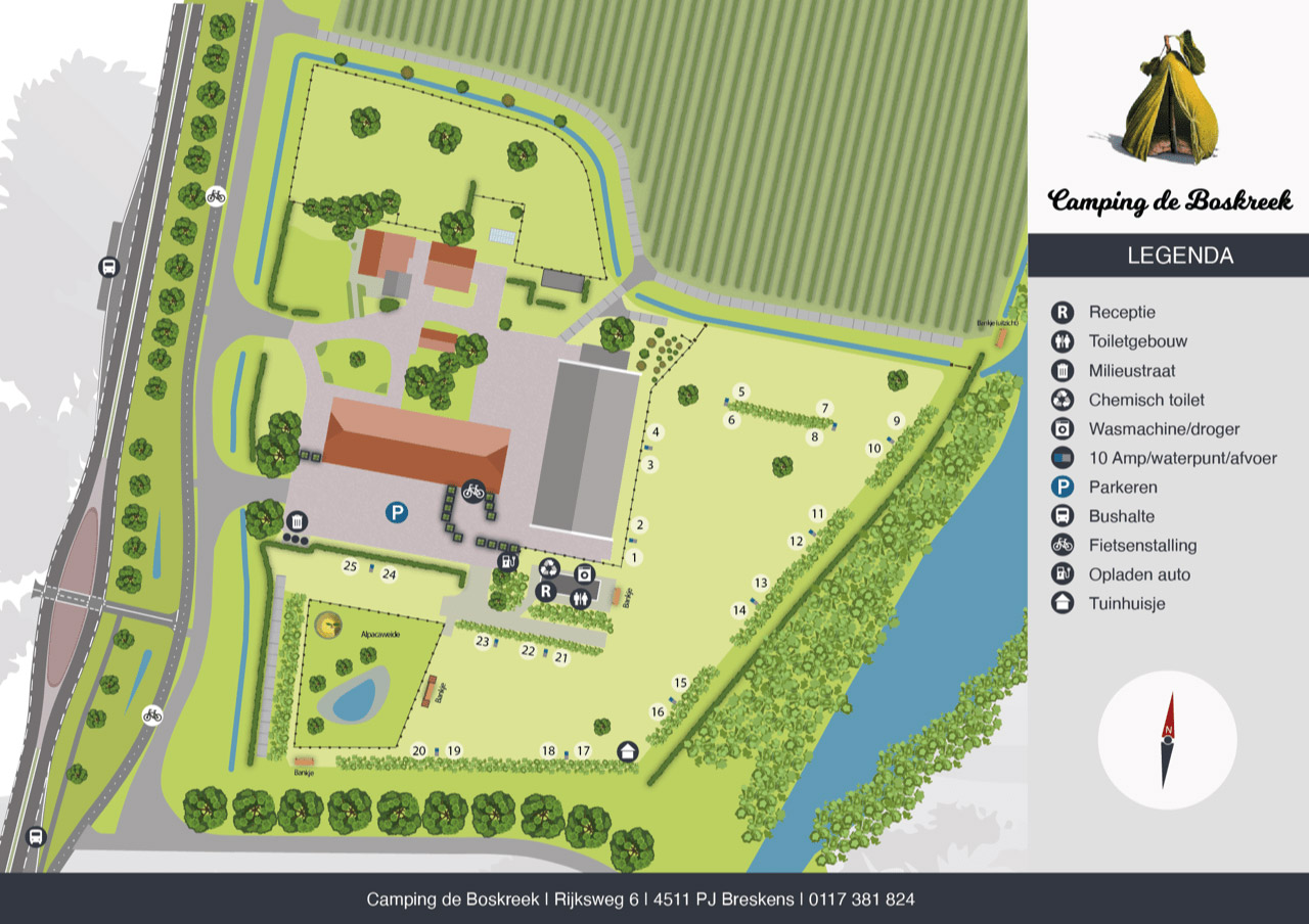 Der Campingplatz de Boskreek ist Teil einer zeeländischen Kette namens 'Mijn Lievelingsplek'. Das ist ein Verein von 19 Bäuerinnen, die mit Stolz ihre Mini-Campingplätze in Zeeland betreiben. Auf dem Campingplatz de Boskreek ist dies die Bäuerin Kitty. Neben dem Acker- und Obstbau hat sie beschlossen, im Jahr 2021 hinter dem bestehenden Bauernhof einen Campingplatz zu errichten. Auch Alpakas haben sich auf dem Gelände angesiedelt. Lustige, freundliche Tiere, die man schnell kennenlernt.