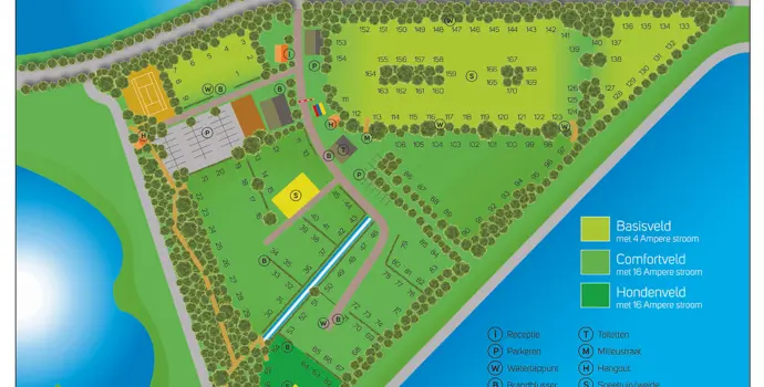 Es gibt 170 Stellplätze, die sich auf mehrere große und kleinere Felder verteilen, davon 100 Komfortstellplätze. Für Hundebesitzer gibt es einen speziellen Hundeplatz. Die Gäste kommen wegen der einzigartigen Natur im und um den Nationalpark Oosterschelde hierher. Das Naturerlebnis spiegelt sich auch auf dem Campingplatz in der abwechslungsreichen Vegetation, den Tierweiden und den Baumhütten zum Spielen wider. Hier können Kinder frei in der Natur spielen, aber auch auf der Hüpfburg, beim Schaukeln oder an der Tischtennisplatte. Das Sommererholungsteam denkt sich auch allerlei Aktivitäten in der Natur aus. Die Sanitäranlagen sind schön beheizt und es gibt eine gute Wifi-Verbindung auf dem gesamten Campingplatz.