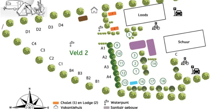 Der Campingplatz verkauft seine eigenen Produkte wie Kartoffeln, Eier und Zwiebeln. Wenn Sie mehr brauchen, finden Sie das Dorf Koudekerke in Gehweite. Der Bauernhof ist zentral auf Walcheren gelegen: Zoutelande Domburg Veere und die Städte Middelburg oder Vlissingen sind mit dem Fahrrad zu erreichen.