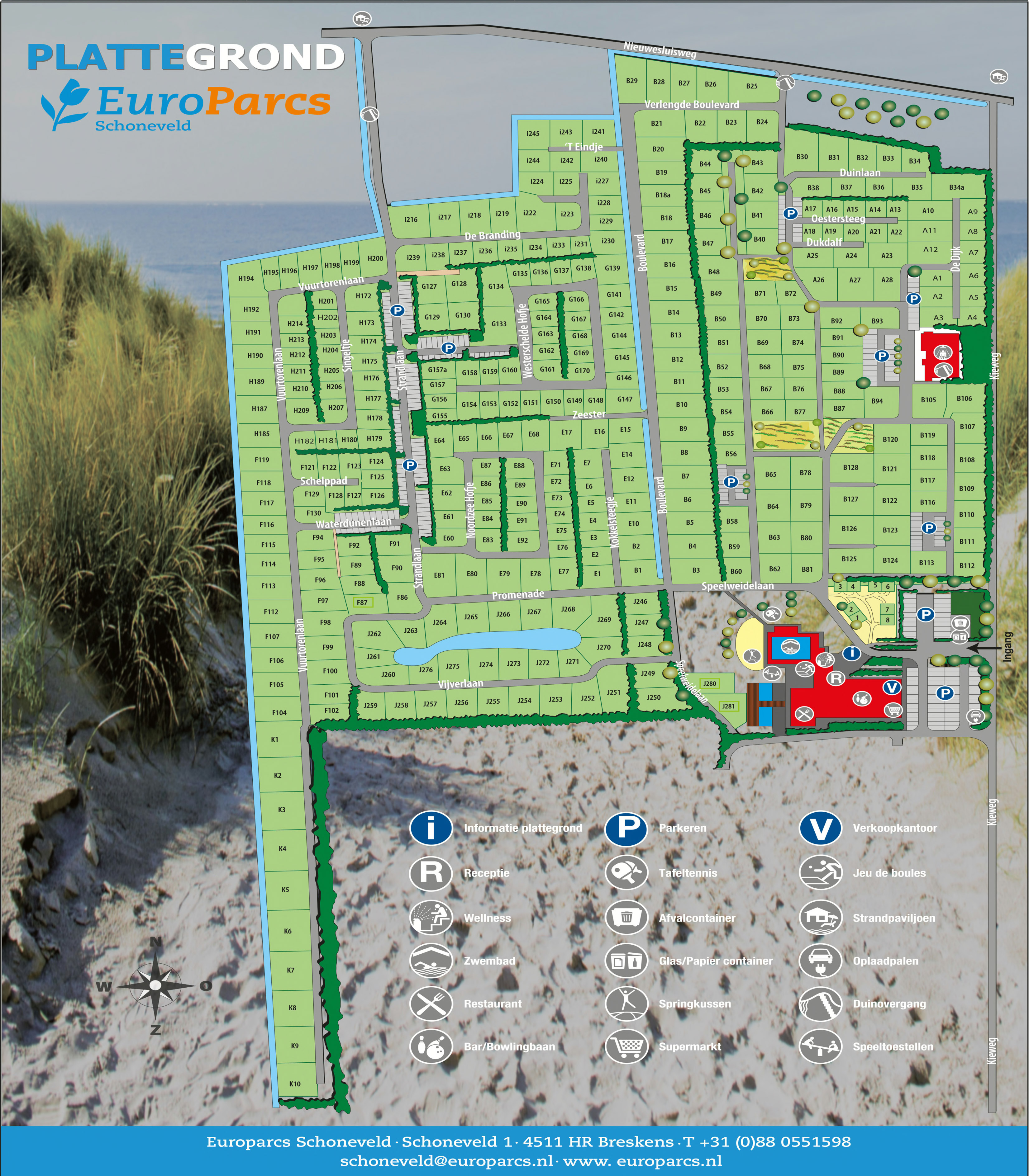 Das ist ein weiterer Glücksfall, ein brandneuer Park von EuroParcs an der Küste von Zeeland. Oder vielmehr an der Küste von Zeeuws-Vlaanderen in der Nähe von Breskens. Hier finden Sie Ruhe und Frieden. Die Umgebung, Ihre Unterkunft und die angebotenen Einrichtungen sorgen dafür. Ein Tipp: Belgien liegt gleich um die Ecke und ein Tagesausflug nach Brügge oder Knokke ist sehr zu empfehlen. Mit der Fahrrad- und Fußgängerfähre von Breskens aus können Sie die seeländische Insel Walcheren leicht erreichen.