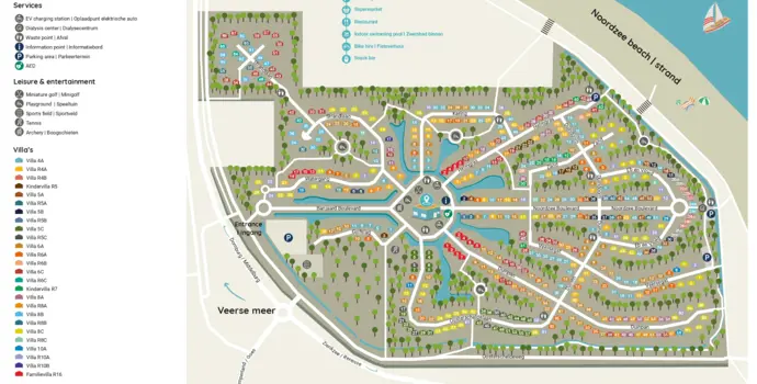 Neben der Nordsee gibt es in unmittelbarer Nähe noch viele andere Gewässer. Da ist zum Beispiel die Oosterschelde, auf der Sie eine schöne Bootstour machen können. Auf dem Veerse Meer gibt es alle erdenklichen Wassersportarten. Und vergessen Sie nicht, das malerische Dorf Veere selbst zu besuchen. Wenn Sie mehr Zeit haben, sollten Sie einen Besuch bei den Holzschuhmachern und der Austernzucht auf Ihre Liste setzen! Mit dem Fahrrad, das im Park gemietet werden kann, sind Sie leicht zu erreichen.