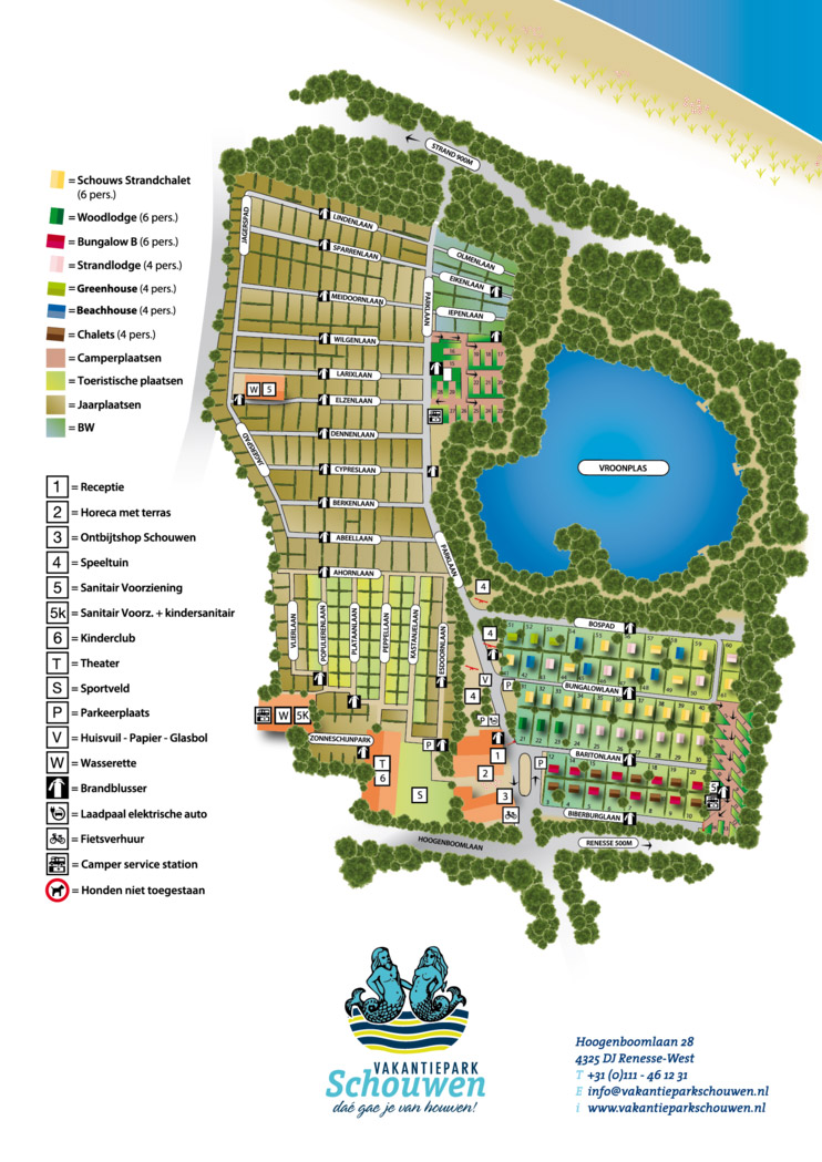 Sie haben keine eigene Campingausrüstung? Kein Problem, denn der Campingplatz verfügt über eine Reihe von speziellen Mietunterkünften, die von einfach bis luxuriös mit eigener Sauna reichen. Die Gewächshäuser, Strandchalets, Strandhäuser und Bungalows variieren in der Größe für 4 bis 6 Personen. Alle Unterkünfte werden auch nur an Familien und Familien mit Kindern vermietet.