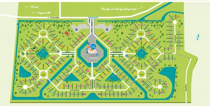 Wenn Sie in den Park einfahren, fällt Ihnen sofort das Hauptgebäude auf. Hier stehen Ihnen die Mitarbeiter des Service-Points zur Verfügung und hier finden Sie auch ein bescheidenes Hallenbad. Was auffällt, sind die freistehenden Villen mit viel Privatsphäre durch das viele Grün und die umliegenden Gewässer. Dazwischen gibt es einige Spielplätze für die Kinder. Ansonsten ist dies ein ruhiger Ferienpark für Leute, die gerne ausgehen und sich bewusst für eine Villa mit viel Platz im Freien und Privatsphäre entscheiden. Der Garten bietet viele Möglichkeiten für ein gemütliches Barbecue; ein komplettes Grillpaket können Sie ganz einfach am Servicepoint oder über die App mieten.